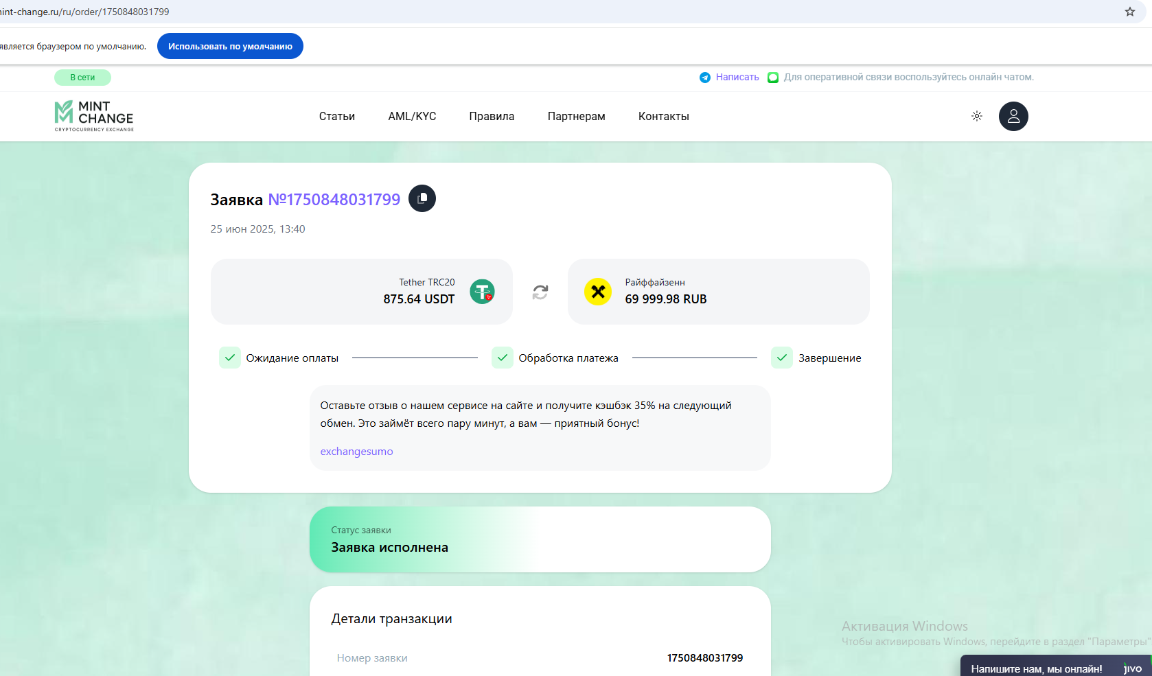 MintChange быстрый и надёжный обмен криптовалюты