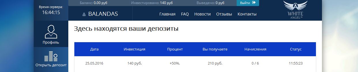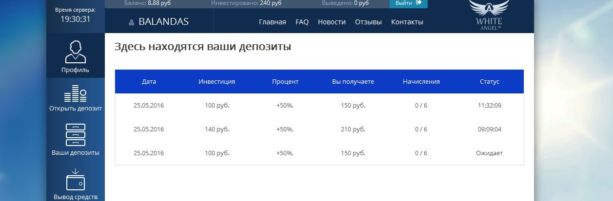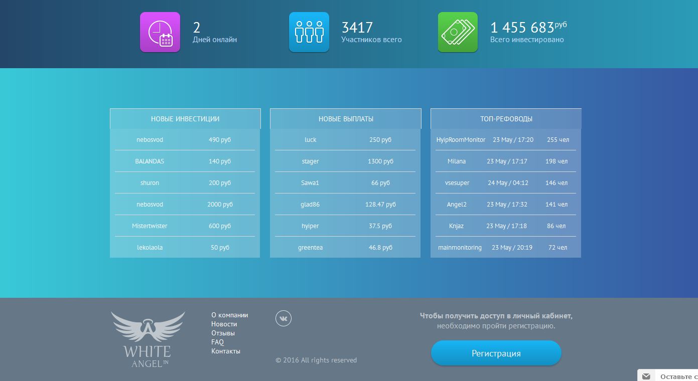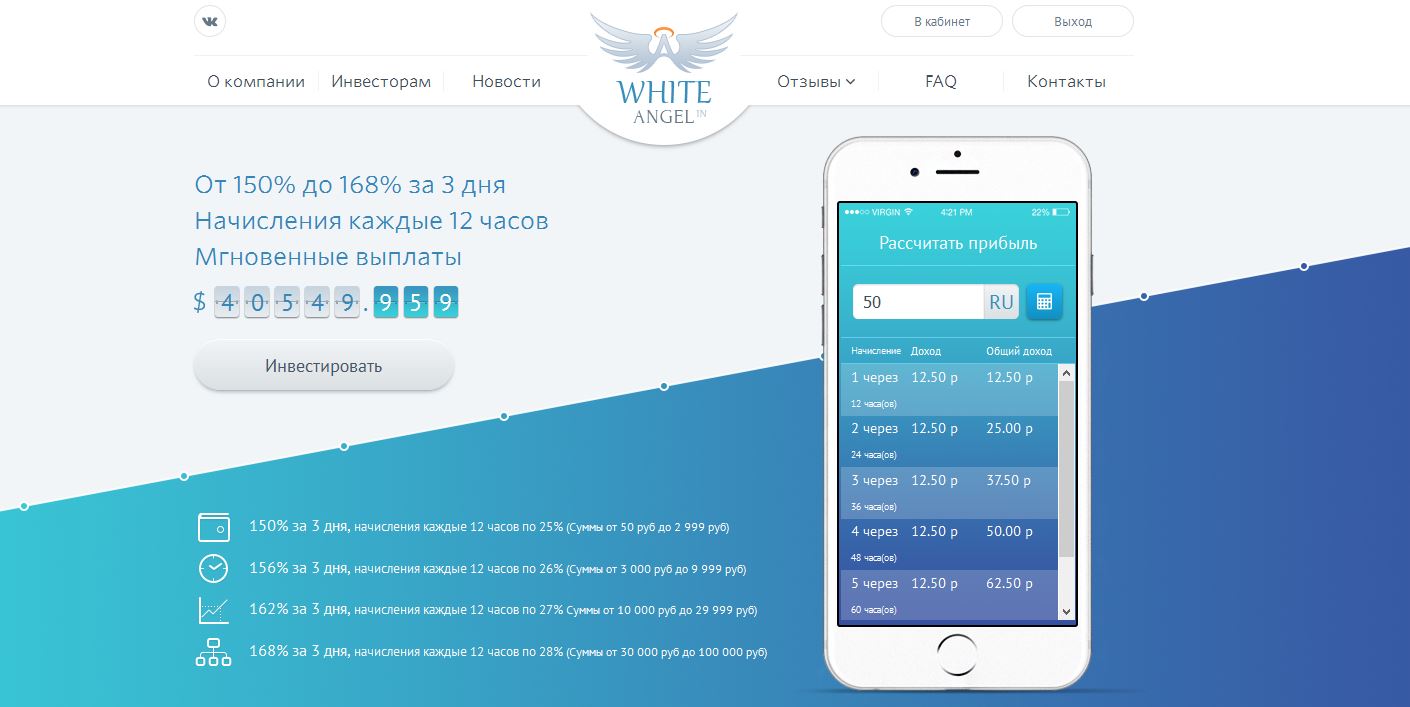 Белый ангел От 150% до 168% за 3 дня white-angel.in