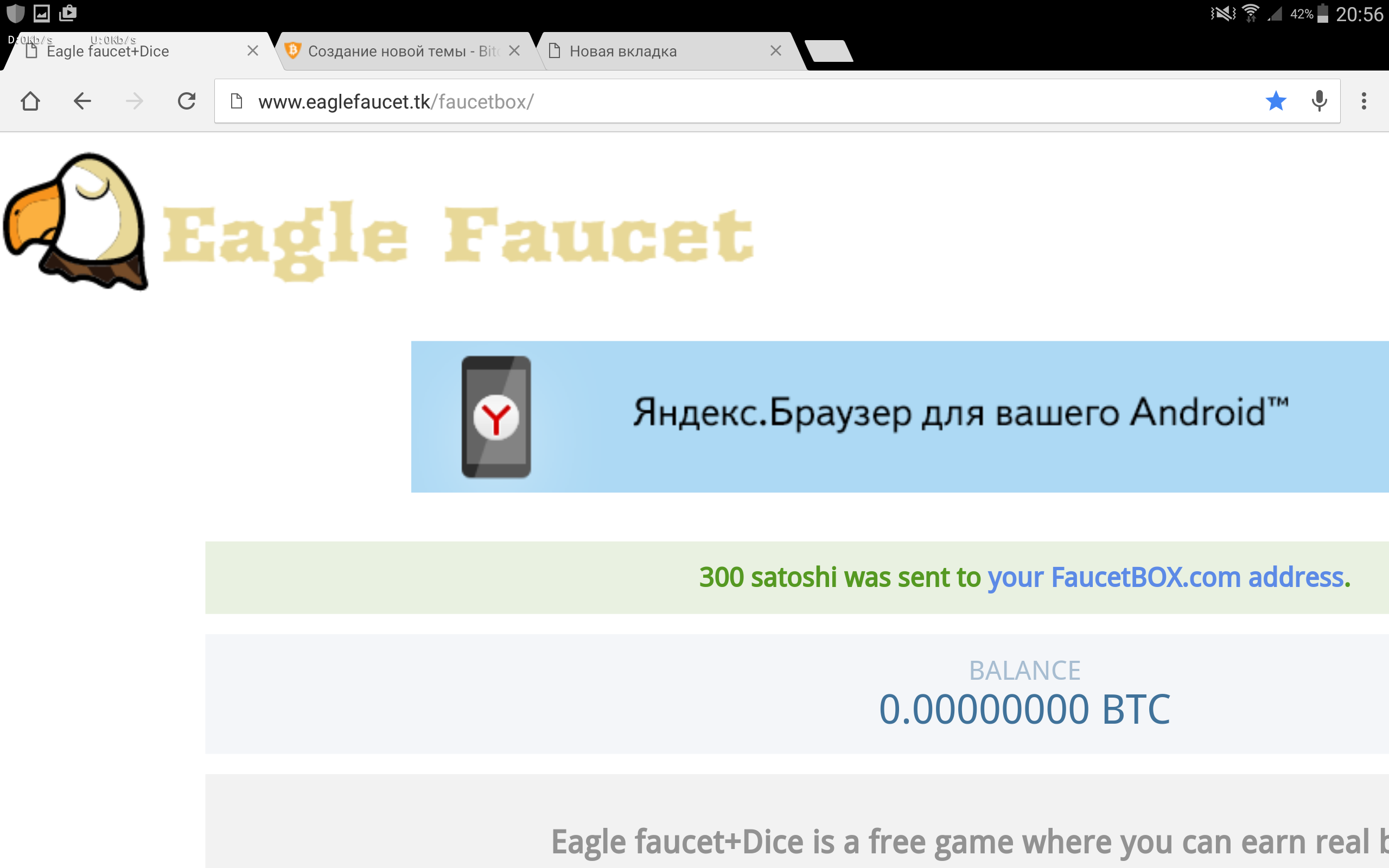 eaglefaucet.tk - 300 сатоши за 15 минут