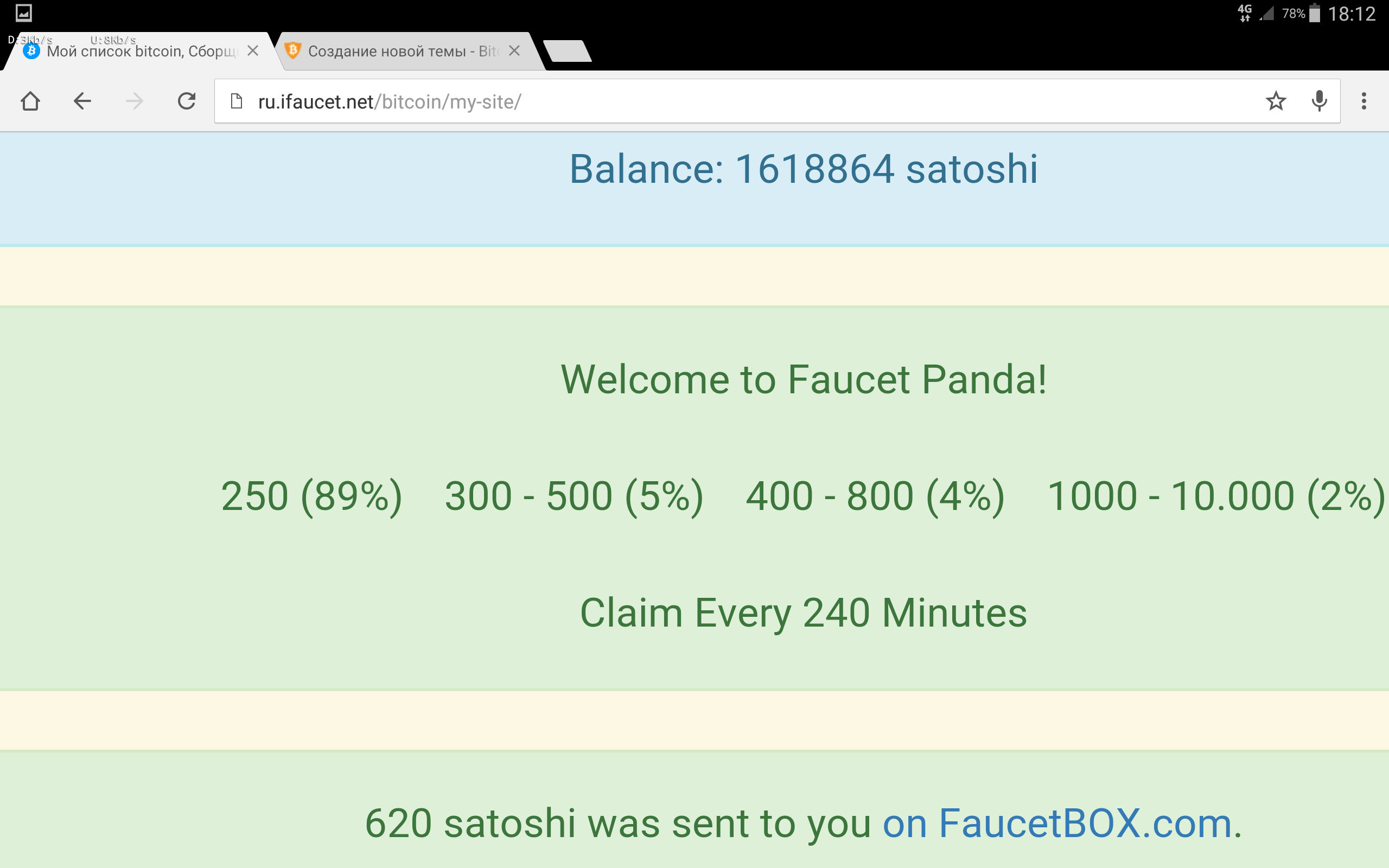 satoshipanda.website - 300 (89%) 350 - 600 (5%) 500 - 999 (4%) 1000 - 10.000 (2%) Claim Every 420 Minutes