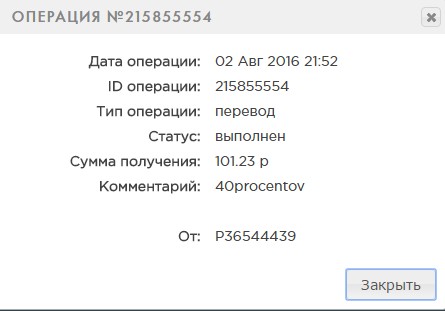 natan69 Posted 2 Aug 2016, 20:42 Posted 2 Aug 2016, 20:42 (edited) я не админ / владелец поиском не нашел 40procentov - это инвестиционный фонд с инновационными разработками и идеями, направленная на обогащение инвесторов и долгосрочное существование системы в целом! В 40procentov существует множество интересных функций, благодаря которым Вы cможете не беспокоиться за вложенные средства и иметь хорошую прибыль спустя маленький промежуток времени. Принимают депозиты от 1 рубля до 30 000 т.р, при помощи платежной системы Payeer Вывод средств происходит вручную и автоматически в зависимости от размера суммы Комиссия проекта на вывод средств составляет 0% от выводимой пользователем суммы Приглашайте в проект своих друзей и знакомых, Вы будете получать 10% от каждого вклада приглашенного Вами пользователя сразу на Ваш Payeer кошелёк! Автоматическая выплата в порядке очереди срабатывает от 10 рублей РЕГИСТРАЦИЯ / ОЗНАКОМЛЕНИЕ : http://40.procentov.tk/?ref=4969 мои депозиты - выплаты Edited 2 Aug 2016, 20:48 by natan69