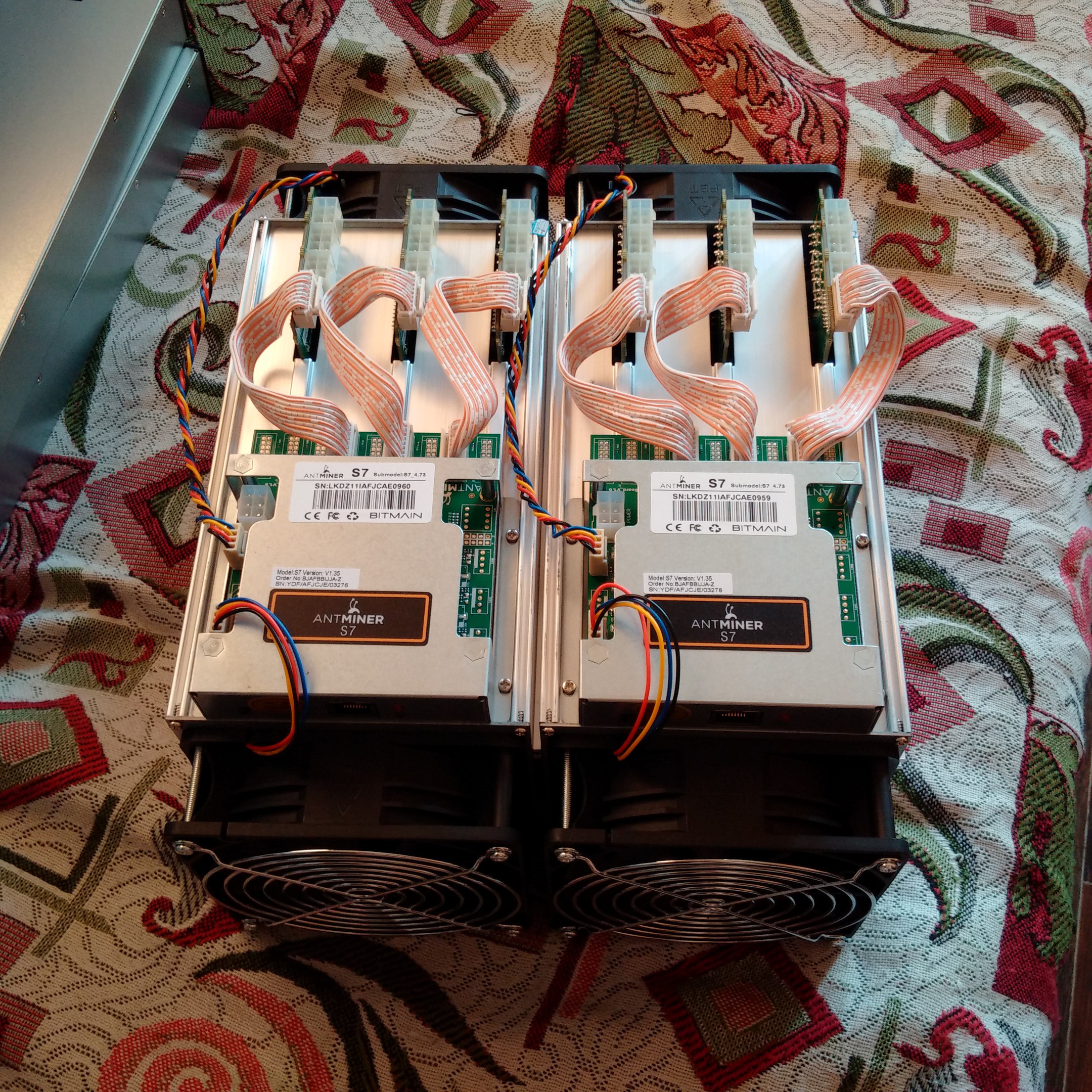 Привезены через оф.сайт Битмайна, первый и единственный владелец, всегда работали и работают в данный момент с родными блоками питания APW3.