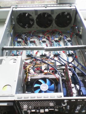 Привет ребята, постараюсь наиболее подробно объяснить суть проблемы, заранее спасибо тем, кто осилит многобукаф, прошу помощи ибо сам решить эту проблему уже не могу и не знаю куда копать.Начальные параметры фермы:мать - Asrock H110 Pro BTC+блок питания - Delta Sun A-206 80PLUS PLATINUM 5600Wвидеокарты - 2 gigabyte aorus 1080ti, 4 gigabyte G1 1070электропроводка - ввод 10кВа, через реле перенапряжения Digitop (выставлено, низ 190v верх 240v), делится на 3 фазы, на каждой автомат.3 месяца назад р