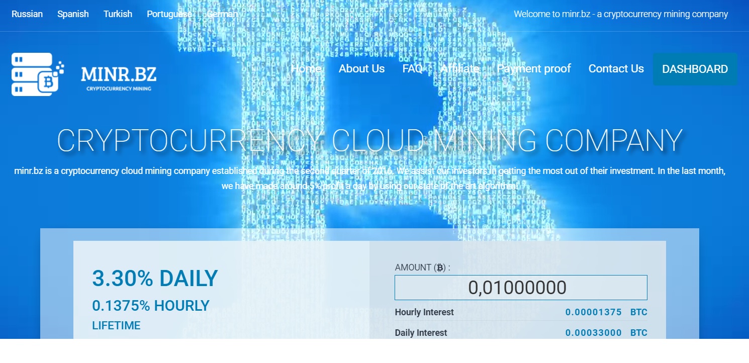 minr.bz - облачный майнинг 3.3% в день