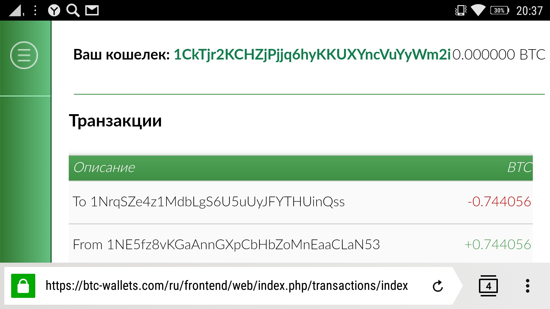 Ошибка при вводе кошелька.