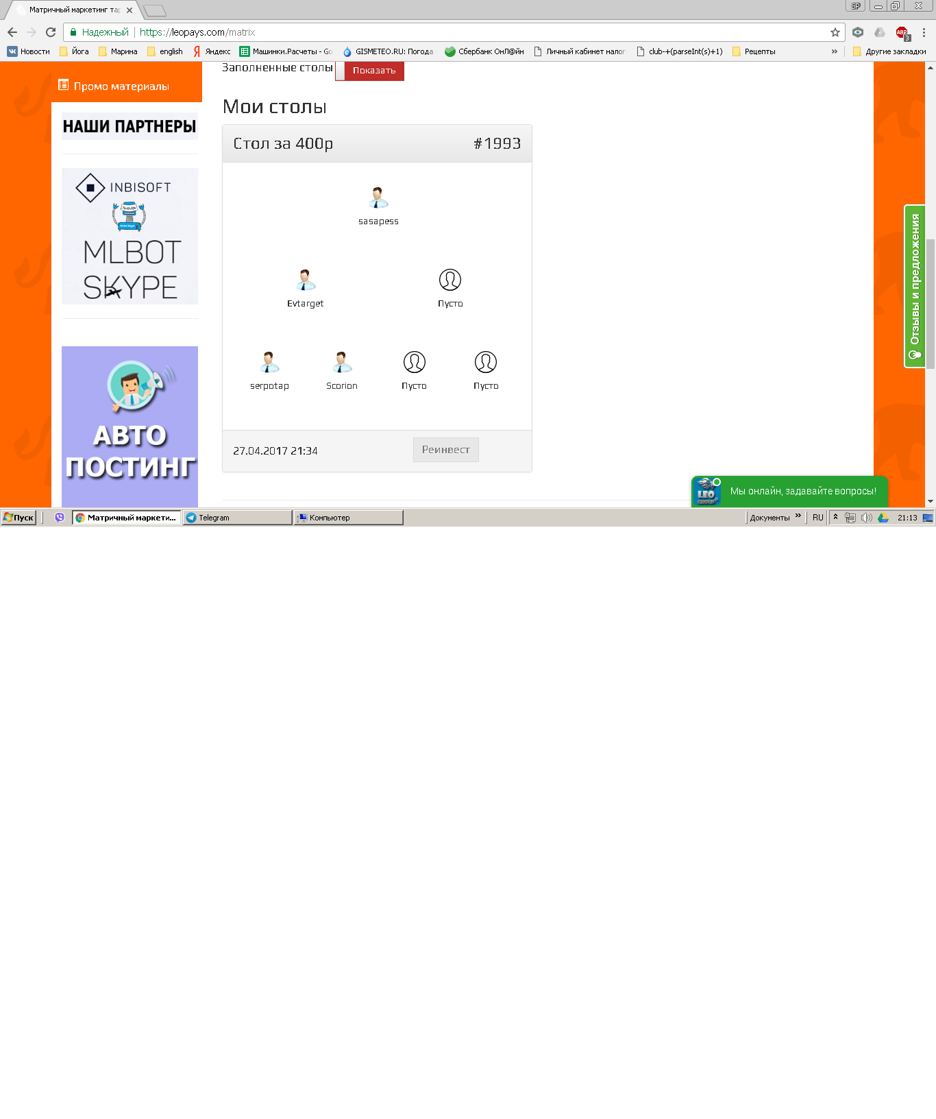 Вошел пока в матрицы на 400 рублей и в бинар на 50 рублей. В ближайшие дни войду на суммы побольше, но пока для старта по чуть чуть. В этой теме буду постить выплаты, надеюсь в ближайшие дни они уже появятся.
