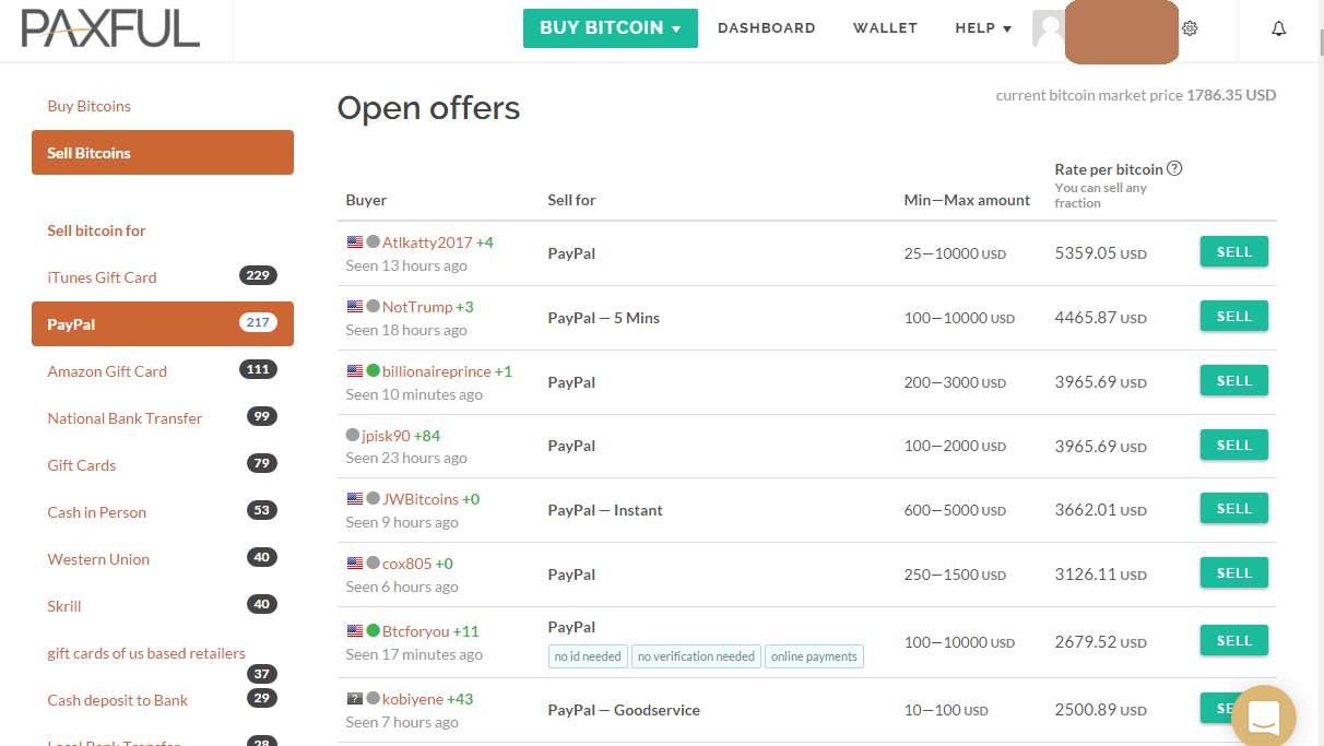 Paxful: 1BTC = $ 5359 в PayPal