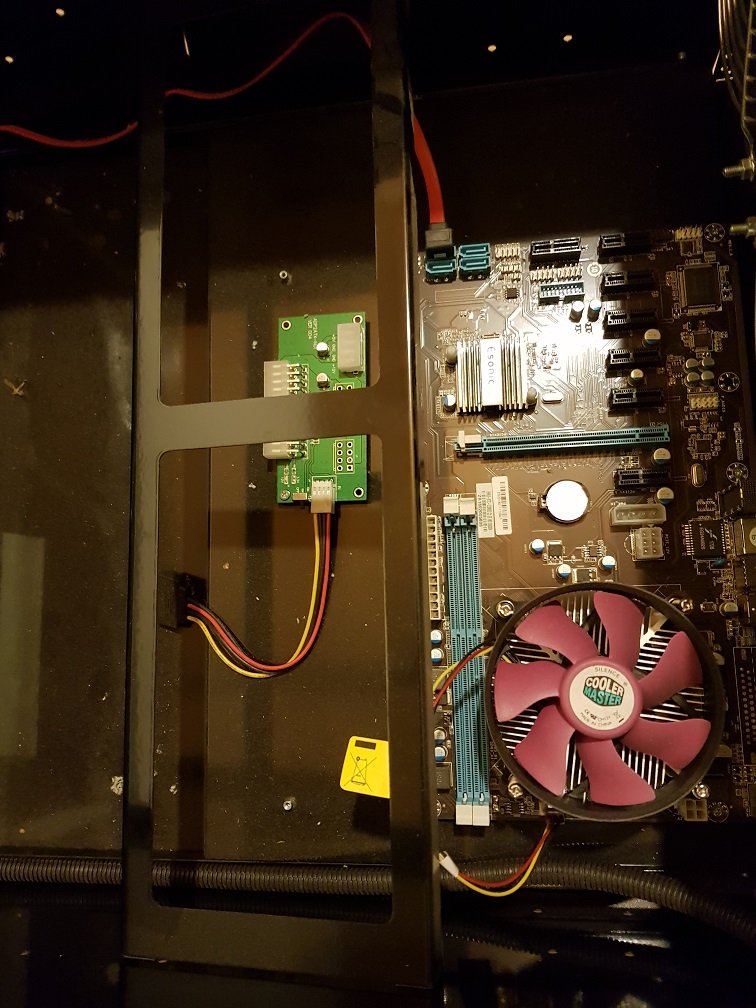 ololo Posted 31 Oct 2018, 10:44 Posted 31 Oct 2018, 10:44 @transtor1970 А есть где-то нормальные фото и/или скриншоты 3d модели корпуса на 8 карт? Со всеми размерами и т.п.? Не первый раз заглядываю в эту ветку, пытаясь сообразить как это всё выглядит, смотрю первый пост, вижу там одну-две мелкие картинки по которым ничего толком не понятно - и ухожу ни с чем. ? Сайт у вас может есть, где всё это выложено в нормальном качестве? По картинкам в первом сообщении не ясно какие зазоры между картами будут, как там райзеры укладывать, какие бп и куда влезут и т.д. - единственное фото с подключенными картами находится слева от текста "под 8 в/карт", но установлено там 6 и картинка аж в четверть мегапикселя..