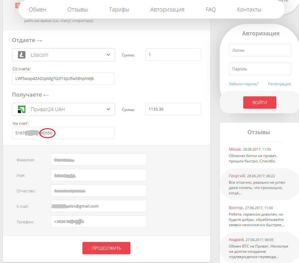obmenia Posted 28 Jun 2017, 10:24 Author Posted 28 Jun 2017, 10:24 (edited) Классика: 1. Хороший курс - решил проверить на небольшой сумме. 2. Заполнил все данные и 3 раза перепроверил, т.к. отслеживаю поступления на разные карты 3. Отправил...Жду подтверждения. Общаюсь в чате. Пишут отправили. Смотрю -нет. 4. Присматриваюсь, а там номер карты отобразился другой и утверждают мне что все отправили!!! 5. Хорошо, что есть скрины. В чате пишут - обращайтесь на support@obmenia.ru. У нас все ок, мы вам все отправили... )))) 6. Проверил в Приват24 - такой карты не существует! Куда интересно они отправили в ручном режиме?! Как говориться, меняйте там где всегда - не ищите на свою ж*пу приключений. И спасибо Господи, что деньгами! ))) Создать новую заявку и сделать номер мы так же можем. Сама заявка http://prntscr.com/fp3vma Если Вы указываете не верный номер, в нашу очередь мы не виноваты. Edited 28 Jun 2017, 15:35 by Uliss