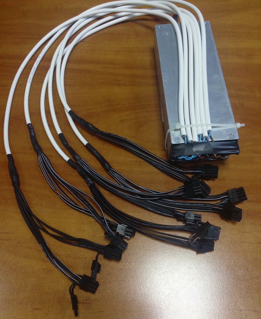 Доброго времени суток гуру элеткрики и электроники. у меня возник вопрос, на который я увы не знаю ответ. перелопатил пол форума интернета, судя по таблицам и прочему, всё ок, но на практике вот что. Имеется дельта 2500bb. распаян на 8 карт, в данный момент подключено только 6 карт и 6 молексов провода на молексы пугв 1*1.5 - потом от них лапша с понижайками, а на карты 1х6 и на лапшу. из бп торчит 2 палки на вид походе на 10 квадратов небольшой кусок. так вот собственно вопрос, почему кабеля с -