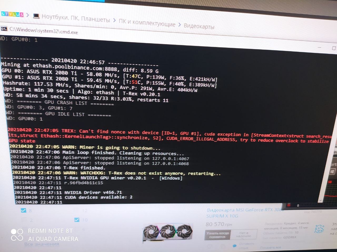Возникла тут у меня ситуация, когда я увидел на пуле, что одна из карт (основная, та, куда, кук бы монитор подключен) не выдаёт полную мощь.