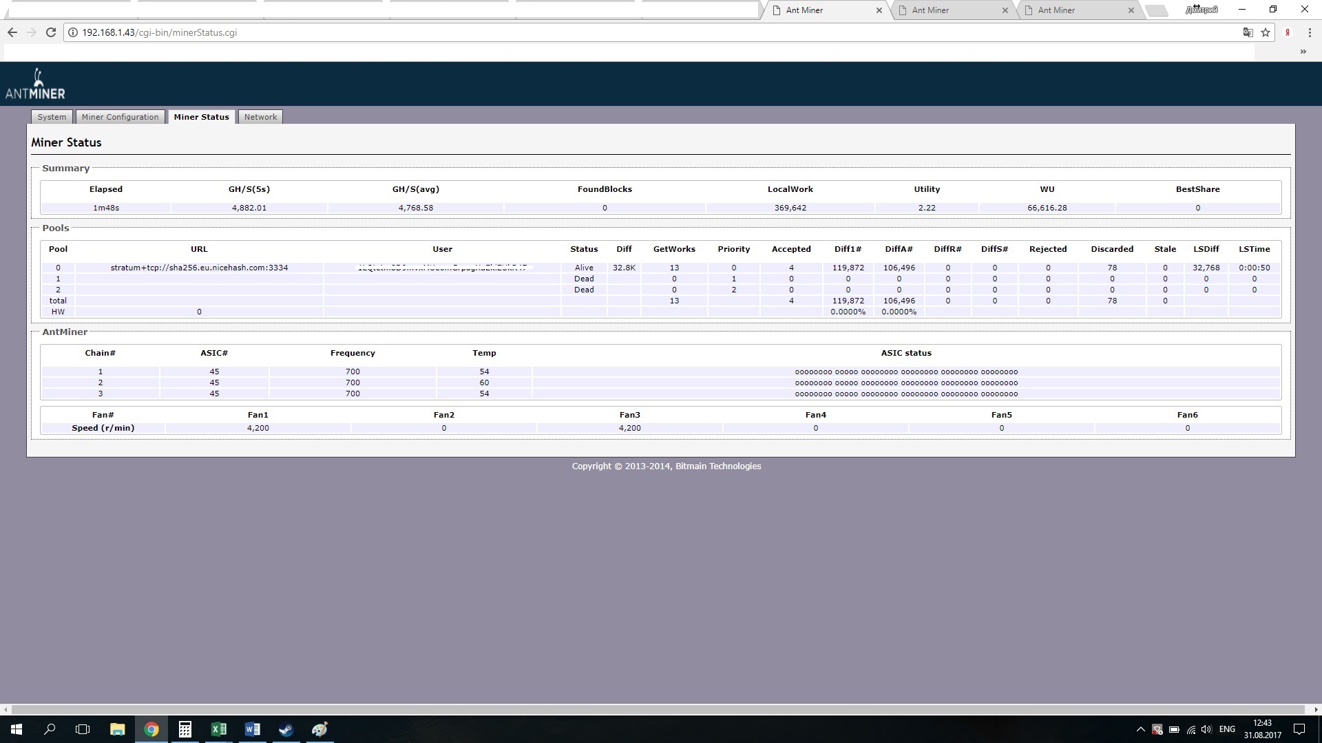 Уважаемое сообщество! Наступил момент, когда у Вас появился выбор - отчислять постоянно за альтернативную прошивку, или сделать это только разово. Вашему вниманию представляю результаты наших наработок, в виде двух прошивок для Antminer D3 и Antminer L3+. Antminer L3+ Antminer D3 Что же даст вам использование этой прошивки: Управление вольтажем на каждой плате асика Управление частотой на каждой плате Результатом такогin Прошивки
