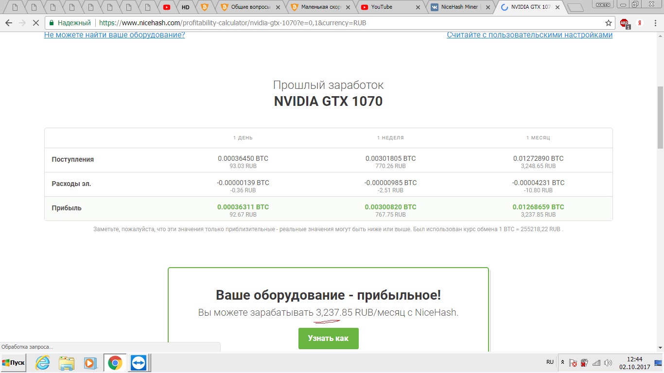 Расчет прибыли майнера