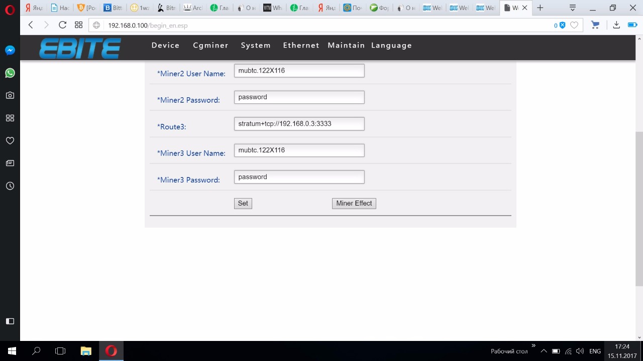 Настройка и скриншоты админ панели майнера приведены ниже: