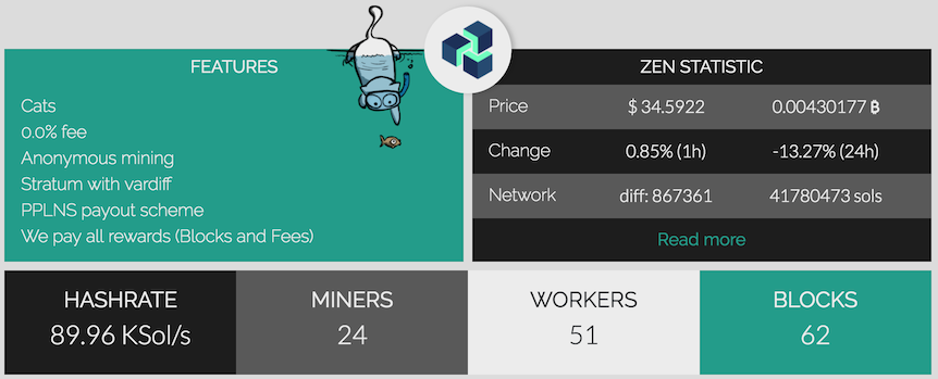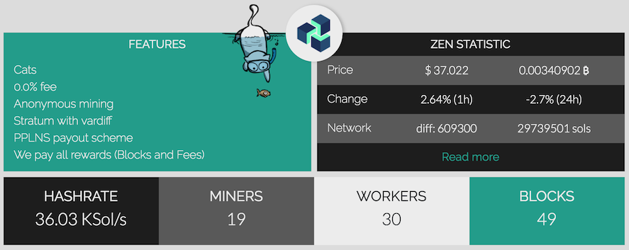 Ктд Posted 16 Nov 2017, 19:37 Author Posted 16 Nov 2017, 19:37 http://zen.catspool.org/ Пул работает стабильно. Платежи работают. Комиссия 0.2% Дискорд: https://discord.gg/wvWr8kG