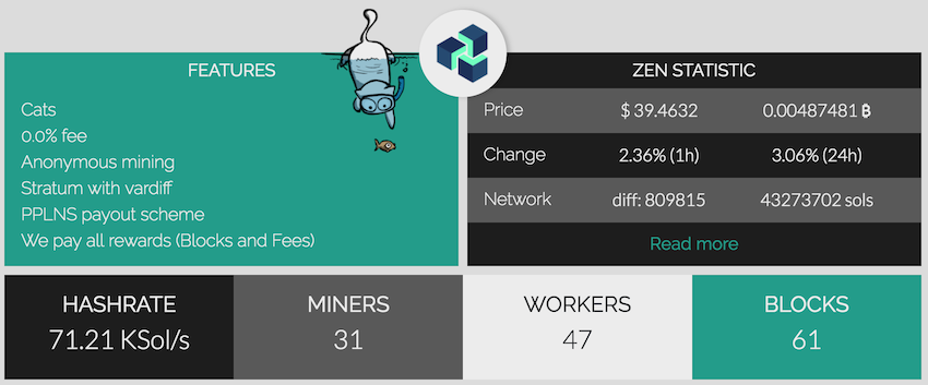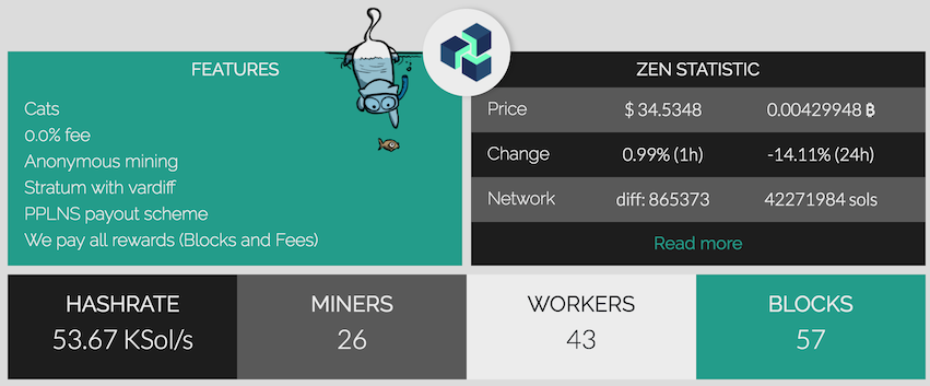 Ктд Posted 18 Feb 2018, 17:16 Author Posted 18 Feb 2018, 17:16 Новый раунд начался. Приходите майнить ZEN во имя здоровой сети :) 0% комиссия. http://zen.catspool.org/