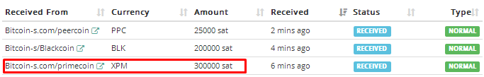 bitcoin-s.com/primecoin/ 300000 сатоши Primecoin, 5 минут. FH